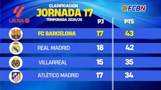 LaLiga EA Sports 2025/26 Standings on Matchday 17