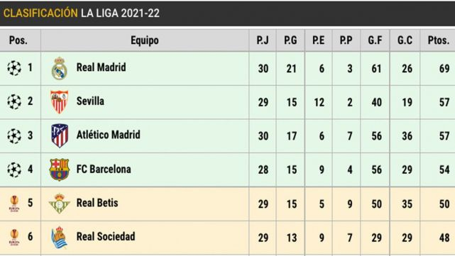 QUERY HERE THE COMPLETE CLASSIFICATION OF LALIGA SANTANDER 2021-2022