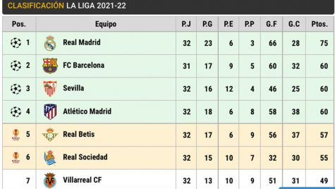 QUERY HERE THE COMPLETE CLASSIFICATION OF LALIGA SANTANDER 2021-2022