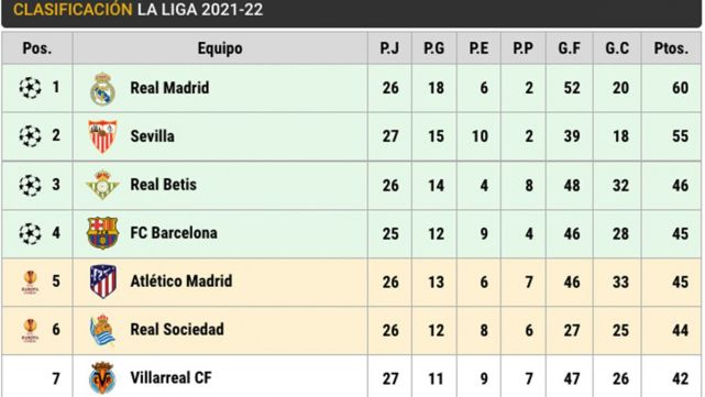 QUERY HERE THE COMPLETE CLASSIFICATION OF LALIGA SANTANDER 2021-2022