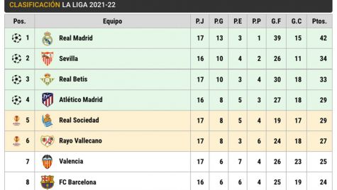 The Ray Vallecano finds in the sixth square with 27 units, after losing against the Villarreal (2-0) in a marked party by referee's controversies. Next, it is the Valency with 25 points and finally the Barça, with 24 units, in his particular free fall in this stretch of the season. Xavi Hernández has not achieved to give with the 'key' of the team and the situation is the same that when it was Ronald Koeman in the bench.