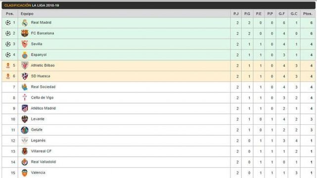 The second day of LaLiga Santander 2018-19 has come to an end leaving to the FC Barcelona and to the Real Madrid like leaders after his respective victories. They are the two only teams that have won the two parties