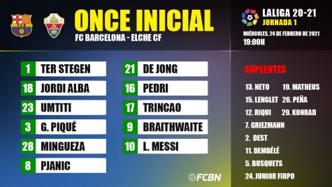 Line-ups of the FC Barcelona-Elche of LaLiga 2020-21