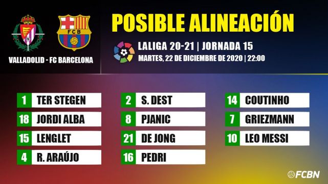 This Tuesday to the 22:00 hours (peninsular schedule Spanish), the FC Barcelona of Ronald Koeman will play against the Valladolid in Pucela, in the corresponding duel to the day 15 of LaLiga Santander 2020-21. The Dutch technician will follow having some drops to play against the picture vallisoletano, although it will have of a block the sufficiently competitive as to win without problems, in theory, to the team of Sergio. To continuation, our forecast of the onces.