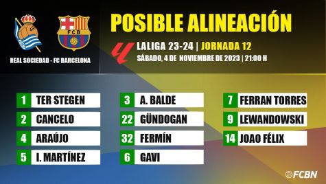 Real Sociedad-FC Barcelona: The possible lineups for matchday 12 of LaLiga