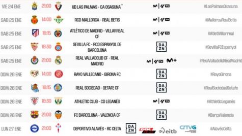 In this league matchday, Hansi Flick's Barça will face Valencia CF at the Estadio Olímpico Lluís Companys on Sunday, January 26, at 21:00. The Real Madrid will visit Real Valladolid CF on Saturday, January 25, at 21:00, and the Atlético will host Villarreal CF, also on Saturday, January 25, at 16:15.