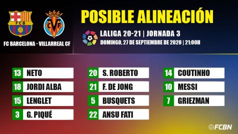 - FC Barcelona: Net, Jordi Alba, Lenglet, Hammered, Sergi Roberto, Busquets, Of Jong; Ansu Fati, Coutinho, Leo Messi; and Griezmann.