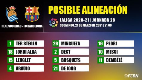 The possibleline ups for Real Sociedad-FC Barcelona in LaLiga
