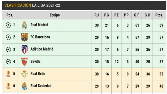 QUERY HERE THE COMPLETE CLASSIFICATION OF LALIGA SANTANDER 2021-2022