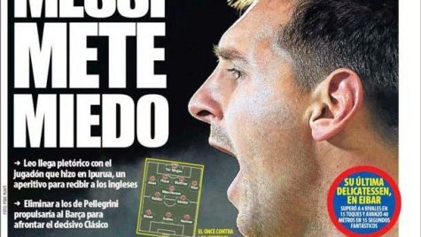 Cover of the periodic Sportive World, Monday 16 March 2015. Big week in front of the City and the Real Madrid. Leo arrives exultant with the jugadón that did in Ipurua, an appetizer to receive to the English. Delete to the ones of Pellegrini propulsaría to the Barça to face the decisive classical.