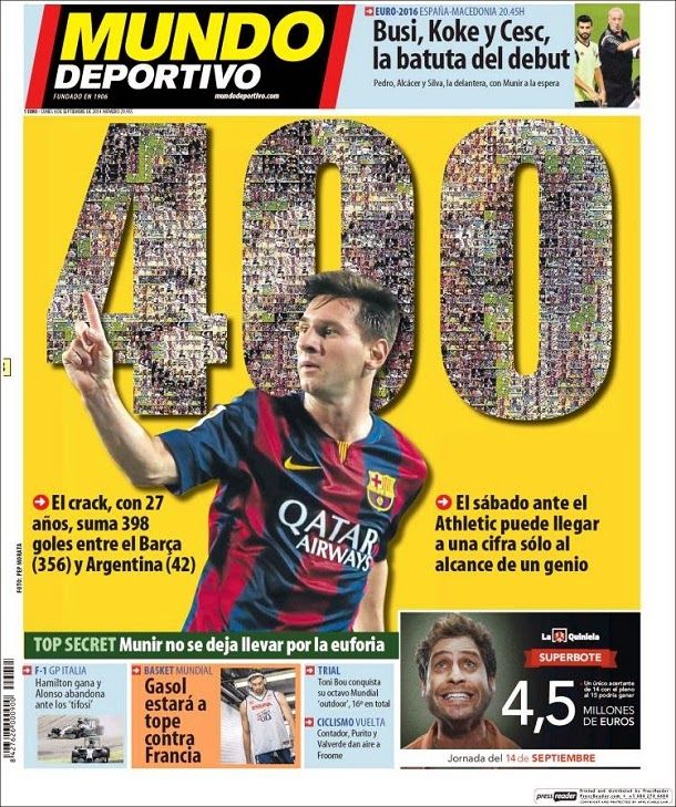Carried Sportive World, Monday 8 September 2014 - 400 goals of Messi