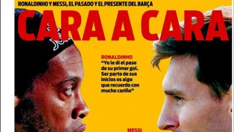 Cover of the newspaper Sport, Thursday 24 December 2015. Ronaldinho And Messi, the past and the present of the Barça. Ronaldinho: "I gave him the pass of his first goal. Be part of his starts is something that remember with a lot of affection". Messi: "Ronaldinho was a very important player for the Barça. His arrival meant a very big change".