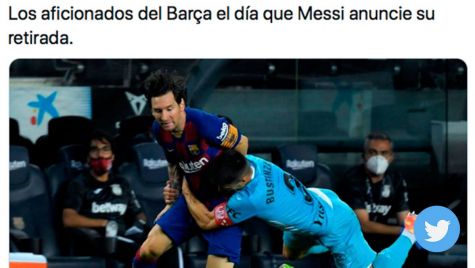 One of the most fun sentences, although with dyes of reality, is the one who published the account of Twitter @HoyEnDeportes4: "The fans of the Barça the day that Messi announce his withdrawal", wrote, adding the image without retouching in which Bustinza placaba to Messi without miramientos.