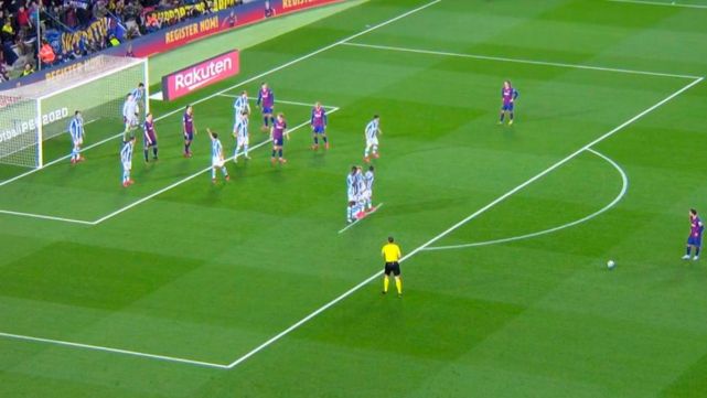 Barça won against Real Sociedad at the Camp Nou, and one of the surprising plays came in a free throw of Leo Messi. The revolutionary way of the basques to stop the argentinian grabbed attention