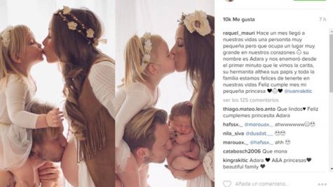 The second daughter of Ivan Rakitic and Raquel Mauri, Adara Rakitic, fulfils a month of life and his parents have wanted to celebrate it sharing a tender image through the social network "Instagram". The couple of the player of the FC Barcelona has been the one who has published the simple "collage" and has shared it with all his followers, in an image in which it appears the complete family.