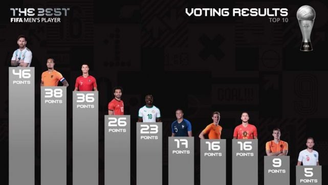 The votes finish being less adjusted of what foresaw in a principle, although equally it treats of the The Best more equalised since the prize began to set up . The initial favouritism of Go Dijk diluted when Gianni Infantino pronounced the name of the Argentinian like winner of the prize, with 46 points. The '10' surpassed in 8 points to the portentoso central, and in ten points to Cristiano Ronaldo.