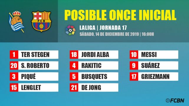 - FC Barcelona: Ter Stegen; Sergi Roberto, Hammered, Lenglet, Alba; Rakitic, Busquets, Of Jong; Messi, Suárez and Griezmann.
