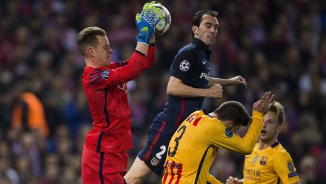 Marc-André Ter Stegen, trapping an aerial balloon against the Athletic