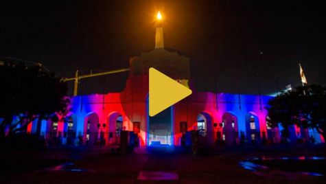 The expedition of the FC Barcelona, conformed by his first masculine and feminine teams, lands this Friday in Los Angeles, and buildings like the Public Library, the Museum of Art, the poster 'Venice' of Venice Beach, Los Angeles Memorial Coliseum, the Petersen Automotive Museum, the Union Station and the stadium Rose Bowl, symbols of this glorious city, have lit with the colours of the Barça.