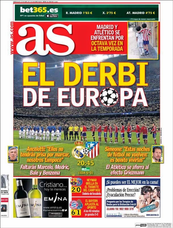 Carried ACE: The derbi of Europe (Wednesday, 22 April)