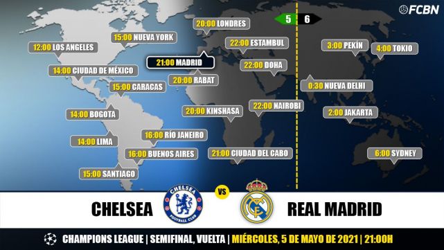 In Spain, Chelsea-Madrid of these 'semis' of the League of Champions will be televised in direct this Wednesday 5 to the 21:00 hours by the channel Movistar League of Champions, in addition to by LaLiga TV (Bar), through the operators Movistar and Orange, that will offer the party in Internet and with access from your mobile, tablet, computer or Smart TV.