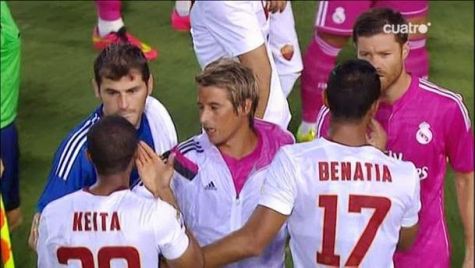 The midfield player of the Rome and ex player of the FC Barcelona, Seydou Keita, denied the greeting to the madridista Pepe before it gave beginning a friendly party between both teams and, when this reproached it to him, decided to throw him a bottle without reaching him