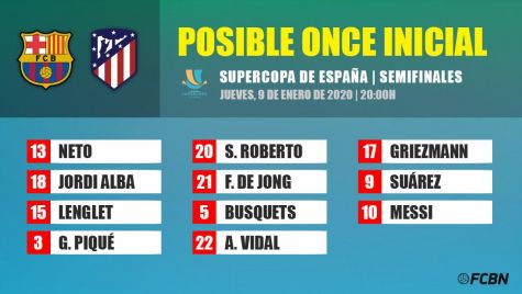 The possible line-ups of the FC Barcelona-Atlético de Madrid of Supercopa