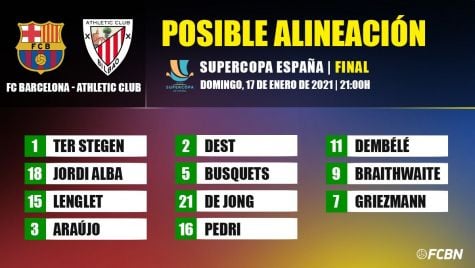 FC Barcelona-Athletic Bilbao's possible line-ups in Spain Supercup