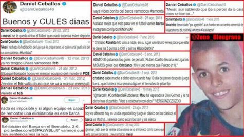 However, now they have trascended also through the social networks, thanks to a collection collected by explains it "Zone_Blaugrana", the "tweets" that Ceballos wrote and published in favour of the FC Barcelona and especially of Xavi, Iniesta, Puyol and Leo Messi, big myths of the club.