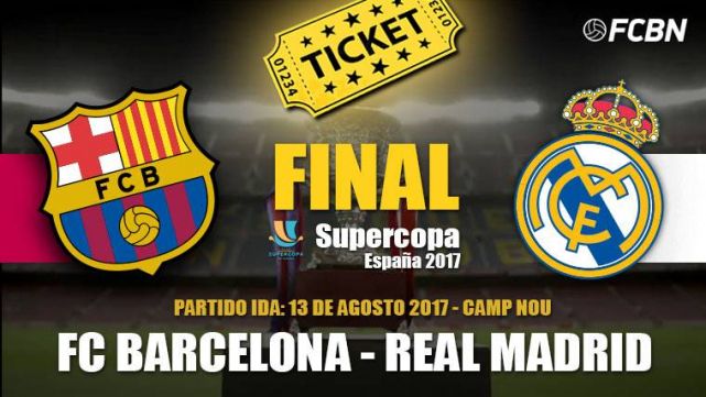 Ya puedes comprar tus entradas para los dos partidos que enfrentan a FC Barcelona contra Real Madrid en la Supercopa de España 2017. La ida se juega en el Camp Nou el domingo 13 de agosto y la vuelta en el Estadio Santiago Bernabéu el miércoles 16 de agosto