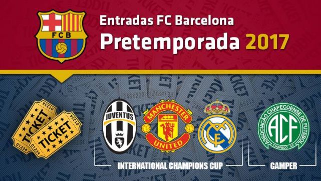 La pretemporada 2017 del Fútbol Club Barcelona arranca el 22 de julio en Estados Unidos con la disputa de la 5ª edición de la International Champions Cup. Juventus, Manchester United y Real Madrid serán los rivales del equipo azulgrana en tierras americanas. A continuación, el lunes 7 de agosto en el Camp Nou, el Barcelona se enfrentará al Chapecoense brasileño en el Trofeo Joan Gamper 2017.