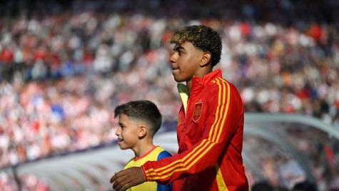 El futbolista formado en La Masia debutó en la Eurocopa con 16 años, 11 meses y dos días. Ha superado a Kazper Kozlowski (Polonia) quien se había estrenado en la última Eurocopa (2021), contra España en La Cartuja con 17 años y 246 días. Poco antes, había debutado Jude Bellingham con Inglaterra con 17 años y 349 días.