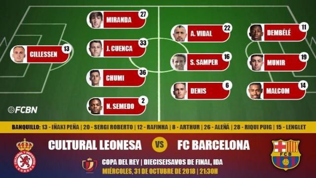 Alineaciones de Copa del Rey: Cultural Leonesa-FC Barcelona