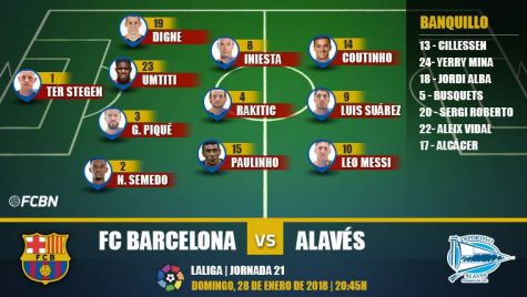 Alineaciones de la J21 de LaLiga: FC Barcelona-Alavés