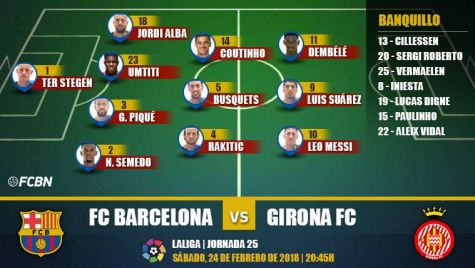 Alineaciones de la J25 de LaLiga: FC Barcelona-Girona