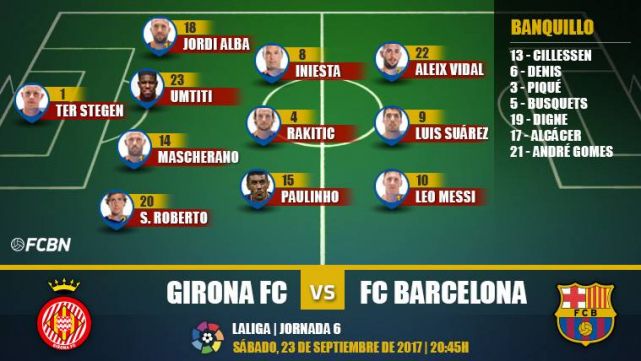 Alineaciones de la J6 de LaLiga: Girona-FC Barcelona
