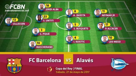 Alineaciones del Barcelona-Alavés (Final de Copa del Rey)