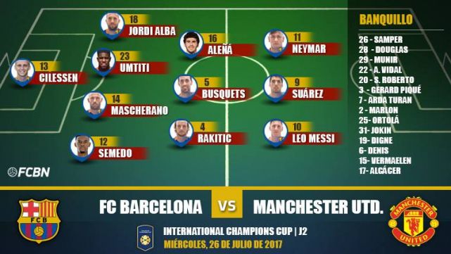 Tras debutar el pasado sábado ante la Juventus, el Barça disputa este miércoles la segunda jornada de la International Champions Cup ante el Manchester United (01.30h). Los de Ernesto Valverde afrontan el segundo partido de preparación de los tres que disputarán en Estados Unidos, ya que el próximo sábado se medirán al Real Madrid.