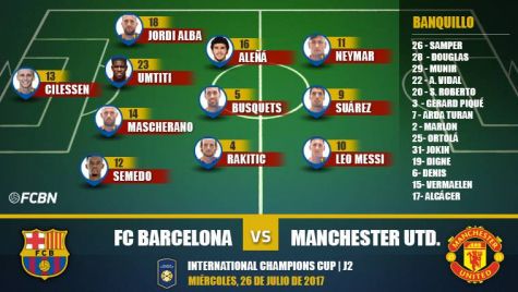 Para el duelo, el FC Barcelona llega con las bajas de Rafinha y Deulofeu, lesionados, mientras que André Gomes y Ter Stegen siguen de vacaciones. Semedo se estrenará como titular con el equipo azulgrana mientras que Aleñá se estrenará en el once supliendo a Iniesta. Umtiti releva a Piqué y tendremos ya en acción a la MSN.