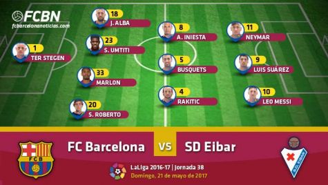 Alineaciones del FC Barcelona-Eibar (LaLiga J38)