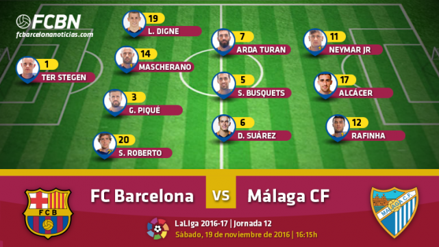 El FC Barcelona recibe este sábado al Málaga en el Camp Nou, y Luis Enrique saldrá con un once de garantías al no fiarse del rival, en racha durante las últimas jornadas. Alcácer ocupará el puesto de Luis Suárez, y Rafinha el de Messi