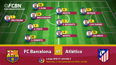 Alineaciones del FC Barcelona vs Atlético de Madrid (Liga J5)