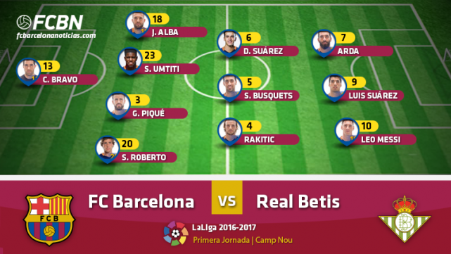 El Barça de Luis Enrique debuta en la Liga Santander 2016-2017 este sábado a las 18.15 horas en el Camp Nou frente al Real Betis Balompié. Los azulgranas buscarán comenzar con buen pie el campeonato donde todos buscarán acabar con el reciente campeón. "Lucho" sale con un once realmente competitivo en búsqueda de los tres primeros puntos del torneo. Por su parte, los andaluces tratarán de salir sin complejos al Estadi a disputarle la posesión a los azulgranas.