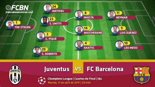 El FC Barcelona se la ida de los cuartos de final de la Champions League 2016-2017 frente a la Juventus, este martes en el Juventus Stadium. Un partidazo tremendo entre dos de los más grandes equipos del Mundo que para el duelo de esta noche van con todo. Sobre todo los azulgranss que, eso sí, contaban con la importantísima baja del sancionado Sergio Busquets. Esa era la gran incógnita de Luis Enrique, saber cómo iba a conformar el equipo y quién sería el elegido para suplir al de Badia.