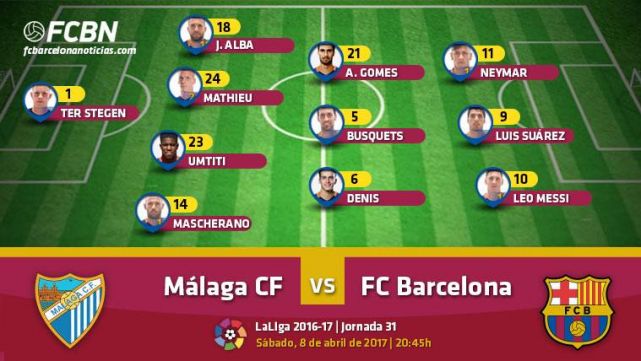 Luis Enrique volvió a rotar, ahora obligado por las bajas, en el once del FC Barcelona para enfrentarse al Málaga CF en La Rosaleda, consciente de la importancia del partido tras el pinchazo del Madrid. El asturiano apostó por la vuelta de Denis