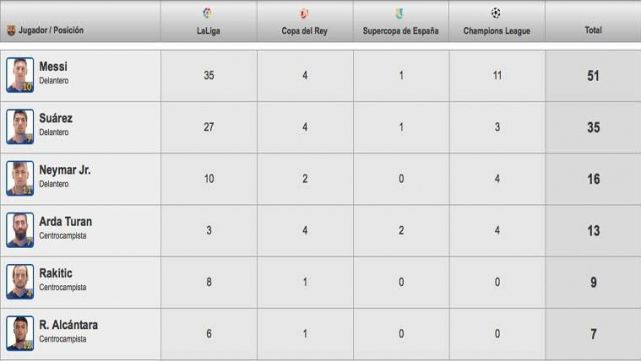 Arda Turan se mantiene como cuarto máximo goleador con 13 goles, aunque la gran mayoría de ellos fueron anotados durante el primer tercio de la temporada. Le sigue de cerca en la tabla de goleadores del FC Barcelona Ivan Rakitic, que ya ha anotado nueve goles y se sitúa como quinto clasificado, dos por encima de Rafinha Alcántara.Aprovechamos para recordar que nuestra nueva sección irá ampliándose con el paso de las distintas campañas, por lo que se convertirá en una herramienta imprescindible a la hora de analizar la evolución goleadora de los distintos jugadores de la plantilla. De momento, a partir de ahora ya puedes estar al día de cuántos goles han anotado cada uno de tus ídolos.