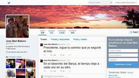 Dos Tweets del ex jugador José Mari Bakero han dejado entrever su disgusto al no ser elegido para coordinar el área deportiva del primer equipo del Barça. Bakero ha enviado a través de Twitter dos enigmáticos mensajes hacia el presidente del Barça Josep Maria Bartomeu