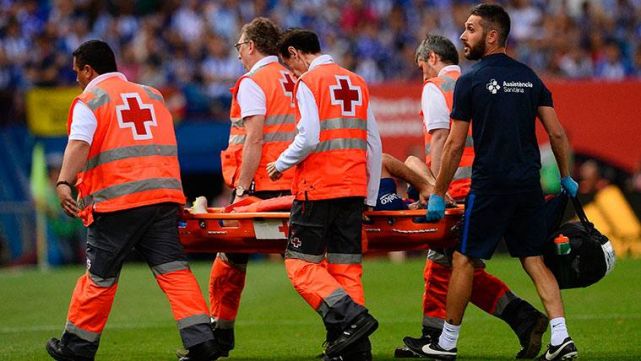 El jugador argentino, que empezaba el encuentro situado como lateral derecho, saltó para pugnar un balón con Marcos Llorente y en la acción sufrió un escandaloso corte en la cabeza. Tras unos minutos de incertidumbre, en los que se comprobó que el jugador seguía consciente, tuvo que ser retirado en camilla.