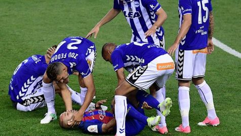 El jugador argentino, que empezaba el encuentro situado como lateral derecho, saltó para pugnar un balón con Marcos Llorente y en la acción sufrió un escandaloso corte en la cabeza. Tras unos minutos de incertidumbre, en los que se comprobó que el jugador seguía consciente, tuvo que ser retirado en camilla.