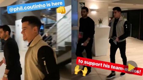 Todavía no puede estar sobre el césped, pero Philippe Coutinho quiere ser uno más en el FC Barcelona. El brasileño se ha acercado al Camp Nou para presenciar el partido que decidirá la eliminatoria de octavos de Copa del Rey contra el Celta de Vigo